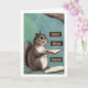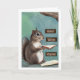 Niedliche Aquarellskizze eines Eichhörnchens, das Bücher mit aquamarinem Hintergrund liest. Vermisste dir meine Freundschaftskarte.