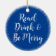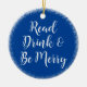 Die schöne Lesegruppe-Ornament, um Ihren Urlaubbaum zu schmücken. Spaß für diejenigen, die Liebe mit einem Glas oder einer Tasse ihres Lieblingsgetränks zu lesen. Lesen, trinken und Spaß machen in dieser Feriensaison! Die Farbe des blauen Hintergrunds kann auf die Farbe Ihrer Wahl geändert werden.