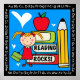Ein blond haariges Strichmännchen Mädchen, ein Stapel Bücher, roter Apfel, gelber Bleistift, Alphabet-Rahmen und Text, der "Reading Rocks!" auf einem lustigen, farbenfrohen Plakat, das perfekt für Schulklassen, Bibliotheken, Kinderzimmer oder überall, wo Sie gewollt haben, um es anzuzeigen! Dieses Reading Rocks Poster ist eine großartige Möglichkeit, das Lesen bei Kindern zu fördern!