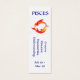 Ein besonderes Lesezeichen für einen Piscean, mit zwei brillanten Orange- und Rottafischen aus einem Aquarellbild von Judy Adamson. Oben steht in blauer Schrift das Wort "PISCES" und darunter die vier wichtigsten positiven Eigenschaften der unter diesem Zeichen geborenen und die Daten: 19. Februar - 20. März. Grußkarten und andere Geschenke sind auch mit diesem Design erhältlich.