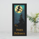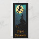 Wunderschöne halloween Lesezeichen mit einem Spuk Haus mit einer Hexe, die vor Vollmond auf einem Besenstiel fliegt. Auf dem Boden entlang des Weges, der zum Spuk Haus führt, liegen leuchtende Schädel. Text kann in Anzug mit eigenen Bedürfnissen und Stil geändert werden. sgb01
