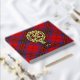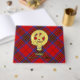 Clan Leslie Wappen Abzeichen umgeben von einem Gurt und Schnallen über rot kartan Hintergrund. Benutzerdefinierter Vorder-, Rücken- und Rückentext.