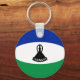 Die Fahne von Lesotho ist dem kreisförmigen fob dieses Schlüsselanhängers geschickt angepasst worden. Eine praktische Erinnerung des Basotho-Erbes.