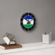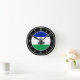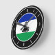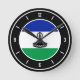 Lesotho Flag Elegante Uhr mit Lesotho Fahne in der Mitte und schöne weiße Uhrennummern auf dem Uhrenrand. Ein zauberhafter schwarzer Hintergrund mit weißen ovalen Elementen vervollständigt das Design und betont die Eleganz. Die wunderschöne Kombination aus Schwarz und Weiß mit der geschickten Integration der nationalen Flaggenfarben machen diese Uhr zum perfekten Geschenk und zum großartigen Schaustück an der Wand. © 2024 CountriesOfWorld