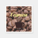 Napkins mit dem Bild von Kaffeebohnen und den Worten, l’Espresso.