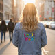 This custom women's denim jacket is designed to be a personal fashion statement. It allows for personalization with favorite images or designs.