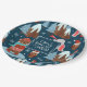 Add hat seasonal touch to your holiday kitchen dining table decor with this liebenswerter custom blue and white Christmas paper plate. Paper plate has a pattern of a festive brown bear ice skating, an owl wearing a Santa hat and glasses, bird on bird on snowy mountain, bunny playing a trumpet, and Christmas trees in the snow. Center text says I. Don't know it snow. Add your family last name for a personalized touch.