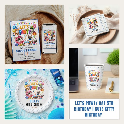 Let’s Pawty Cat 5th Birthday | Cute Kitty Birthday Einladung