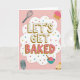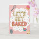This card shows a pastel pink background with a big white cloud shape in the middle. Inside the cloud, the text reads “LET’S GET BAKED,” with “LET’S GET” in toasted golden-brown letters topped with white icing and tiny sprinkles, and “BAKED” in frosting-like pink with more sprinkles. The letters look puffy and slightly 3D, so the message stands out right away. Around the words, you’ll spot baking details: a muted teal whisk near the top left and a cupcake with pink frosting and sprinkles near the top right. Near the bottom, a teal mixing bowl holds bright pink batter with a wooden spoon resting in it, like someone just paused mid-stir. There’s also a gray microphone at the lower left and another cupcake at the lower right with an orange swirl on top, adding a fun little twist to the kitchen scene. It feels like a sweet way to say you want to spend time together, whether it’s for romance or a close friendship 🥰❤️.