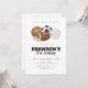 This playful Let’s Have a Ball birthday invitation features watercolor sports balls including basketball, soccer, football, volleyball, baseball, and tennis. Perfect for kids who love sports, this design creates a fun and energetic game day party theme. Easily personalize the text for your child’s birthday celebration.
