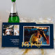 Moderne Foto Einladung - für eine Verlobung konzipiert, aber für Anzug jeden Anlass bearbeitbar. Auf der Vorderseite der Karte steht einfach "Let's Party!" in einem goldenen Pinselskript, das als Overlay über Ihrem Foto steht. Auf der Rückseite der Karte befinden sich Ihre personalisierten Feierlichkeiten Details mit 3 weiteren Fotos, die in quadratischem Format angezeigt werden. Das Design hat eine schicke Farbpalette von Mitternachtsblau, Gold und Weiß.
