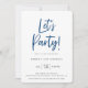Let's Party Modern Blue Script Geburtstag Einladung