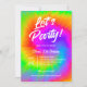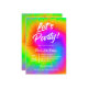 This trendy rainbow tie dye invitation features bright colors and your custom text. Use the template form to add your details. The Customize feature allows you to change the font style, and add or delete text.