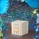 Lets Purr-ty Cat, Pink, Yellow and Blue Stripes Geschenkschachtel