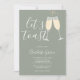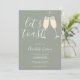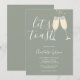 Eine elegante Einladung zur Brautparty mit Champagnergläsern und Unterschrift-Script-Name, diese stilvolle Einladung kann mit Ihren Informationen in schicker Schrift auf einem salbeigrünen Hintergrund personalisiert werden. Entworfen von Thisisnotme©