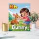 Cute and colorful alphabet poster featuring the letter B with a sweet girl character and a friendly bunny illustration.