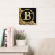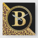 Letter B Monogram Leopard Print Gold and Black Quadratische Wanduhr