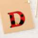 Supercute Letter D in einem lustigen Ladybug Fleckchen Muster mit einer süßen gelben Blume und einem kleinen Ladybug Freund. Ideal, um eine Wasserflasche oder einen Computer zu personalisieren oder als Geburtstagsparty Gunst auszugeben.