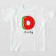 Personalisieren Sie Ihren T - Shirt mit einem kühnen roten Letter D. Designed with watermelon Details, ist dieser niedliche T - Shirt eine Menge Spaß und Sommervibes. Ein unisex Design, das sowohl für Mädchen als auch für Jungen gut geeignet ist.