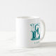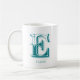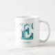 Maßgeschneiderte Tasse mit dem Buchstaben E in aquamariner Typografie. Fügen Sie Ihren Namen mit der Personalisierungsfunktion hinzu.