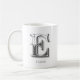 Maßgeschneiderte weiße Kaffeemaschine mit dem Buchstaben E in einer einzigartigen dunkelgrauen Typografie. Fügen Sie Ihren Namen mit der Personalisierungsfunktion hinzu.