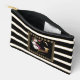 Elegantes und einzigartiges Geschenk für jeden Anlass. Ein nachdenkliches Geburtstagsgeschenk, ein elegantes Weihnachtsgeschenk oder ein elegantes Muttertagsgeschenk. Passen Sie die Typografie auf der Rückseite an und verwandeln Sie sie in einen stilvollen Accessoires-Beutel für Ihre Kosmetik, Stifte und andere Schulmaterialien oder einen personalisierten Buchhaltungsbeutel, um Quittungen für Ihre Mitarbeiter, Lehrer oder Brautmädchen zu erhalten. Exquisite blumengeschmückte Einrichtung, die das elegante Goldmonogramm schmückt. Der personalisierte Name macht es einzigartig und ist ein personalisiertes Geschenk für jeden Gal, dessen Name mit dem Buchstaben G beginnt. Elegant und modern Schwarz-weiße Streifen Hintergrund.