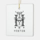 Letter H Elegant Monogram Weihnachtsschmuck. Eleganter, dekorativer Monogramm-Buchstabe H in einer trendigen schwarzen + weißen Farbpalette, obwohl alle Farben editierbar sind! Personalisieren Sie die Rückseite des Ornaments mit einem Foto. Alle Buchstaben A bis Z befinden sich in den überlagerten Dateien dieses Designs. Klicken Sie auf "Diese Vorlage personalisieren" und wählen Sie "Bearbeiten mit dem Entwurfstool". Klicken Sie auf das Augensymbol, um Ebenen ein-/auszuschalten, wenn Sie einen anderen Monogramm-Buchstaben auswählen oder einen Ornament mit zwei Monogramm-Buchstaben erstellen möchten. © Kimbellished, LLC