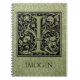 Charmanter dekorativer Brief I initiale monogramm Kalligraphie Stil Typografie ersten Buchstaben in schwarz über Vintagen Salbei grün - Avocado grün Buch Futter mit von weißen Ginkgo biloba Blätter. Verwenden Sie die Vorlage, um mit einem Namen oder einer Nachricht im mittelalterlichen schwarzen Schriftart zu personalisieren.