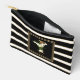 Elegantes und einzigartiges Geschenk für jeden Anlass. Ein nachdenkliches Geburtstagsgeschenk, ein elegantes Weihnachtsgeschenk oder ein elegantes Muttertagsgeschenk. Passen Sie die Typografie auf der Rückseite an und verwandeln Sie sie in einen stilvollen Accessoires-Beutel für Ihre Kosmetik, Stifte und andere Schulmaterialien oder einen personalisierten Buchhaltungsbeutel, um Quittungen für Ihre Mitarbeiter, Lehrer oder Brautmädchen zu erhalten. Exquisite blumengeschmückte Einrichtung, die das elegante Goldmonogramm schmückt. Der personalisierte Name macht es einzigartig und ist ein personalisiertes Geschenk für jeden Gal, dessen Name mit dem Buchstaben I beginnt. Eleganter und moderner Schwarz-weißer Streifen Hintergrund.