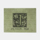 Charmanter dekorativer Brief J Initial Monogram Kalligrafie Stil Typografie ersten Brief in Schwarz über Vintagen schlaue grüne Buchauskleidung mit weißen Ginkgo Biloba-Blätter.