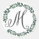 Letter M Monogram Minimalistisch Botanischer Leaf Runder Aufkleber