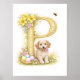 Letter P Gold Spring Nature Monogram Kids Puppy Poster