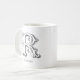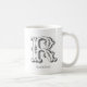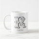 Maßgeschneiderte Tasse für Weißkaffee mit dem Buchstaben R in einer einzigartigen dunkelgrauen Typografie. Fügen Sie Ihren Namen mit der Personalisierungsfunktion hinzu.