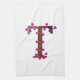 Letter T dekoriert anfänglich auf weiß Geschirrtuch