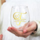 Letter T Monogram Bridesmaid Gift, Modernes Elegan Weinglas Ohne Stiel