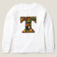The design is a vibrant and festive representation of Thanksgiving, combining seasonal autumn elements with a playful cartoon turkey. At the heart of the image, the letter "T" stands out, adorned with vibrant leaves, pumpkins, and acorns, evoking a delicate autumnal atmosphere. Beside the letter stands a charming cartoon turkey, adding a touch of fun and personality to the design.