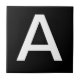 Keramik Buchstaben Fliesen. Kleine oder obere Buchstabenkacheln. Sie passen sich die Buchstaben an, die Sie für Ihre Keramik oder Mosaikschild benötigen. Buchstabenkachel für wetterfeste Schilder, Hausnummer. Weiß auf schwarzem Hintergrund.