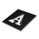 Keramik Buchstaben Fliesen. Kleine oder obere Buchstabenkacheln. Sie passen sich die Buchstaben an, die Sie für Ihre Keramik oder Mosaikschild benötigen. Buchstabenkachel für wetterfeste Schilder, Hausnummer. Weiß auf schwarzem Hintergrund.