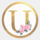 Letter U Monogram Roses Floral & Elegant Gold Runder Aufkleber