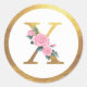 Letter X Monogram Roses Floral & Elegant Gold Runder Aufkleber