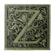 Charmanter Zierbrief Z Initialmonogramm. Typografie im kalligraphischen Stil. William Morris erster Brief in Schwarz über Vintagen Avocado grün Vintages Buch Auskleidung mit cremefarbenen Ginkgo Biloba-Blätter.