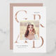 Passen Sie diese schicke Abschluss-Ankündigung mit einem quadratischen Foto überlagert auf dem Wort "GRAD" in Rose Goldfolie, zusammen mit Ihrem Namen, Schule und Abschluss Jahr. Fügen Sie dem Hintergrund ein zusätzliches Foto und eine persönliche Nachricht hinzu.
