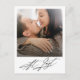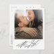 Moderne, schwarz-weiße Foto Verlobung Ankündigung Postcard. Design bietet Single Foto, Typografie Skript ''endlich" auf der Vorderseite und Ihre Nachricht auf der Rückseite. Ideal, um Ihre großen Neuigkeiten zu verkünden.