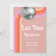 Letzte Disco Junggeselinnen-Abschied Tour und laden Vorlage. Benutzerdefiniertes, personalisiertes, bearbeitbares Download, Retro Groovy Disco Erwachsenen Party zwei Seiten Einladung mit Party Veranstaltungen