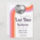 Letzte Disco Junggeselinnen-Abschied Tour und laden Vorlage. Benutzerdefiniertes, personalisiertes, bearbeitbares Download, Retro Groovy Disco Erwachsenen Party zwei Seiten Einladung mit Party Veranstaltungen