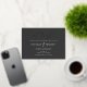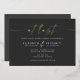 Diese Landschaft moderne Hochzeitseinladung enthält die Worte "endlich" in Folie auf dunklem Hintergrund, zusammen mit dem Platz unten für alle grundlegenden Details über Ihre Hochzeit.