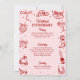 Dieses rosa und rotes Bachelorette Wochenende lädt und bietet einen kühnen Retro-Western "last rodeo" mit spielerischen Doodle-Illustrationen, perfekt zum Feiern in echter Cowgirl-Mode überall. Die Vorderseite zeigt ein selbstbewusstes Cowgirl, das sich in einem Martini-Glas niederlässt, umgeben von Kakteen, Kakteen, Cowboystiefeln, Hüten, Discobällen, Stars, die rustikalen Western-Charme mit lebendigen Party vereinen. Die Rückseite zeigt einen kompletten Wochenendausflug, gerahmt durch die Koordination von Doodle-Ikonen wie Lassos, Stiefel, Cocktails und Hufeisen für einen unterhaltsamen und zusammenhängenden Look. Mit seiner lebhaften Farbpalette, frechen, von Hand gezeichnet Details und dem passenden Front-und-Back-Design ist diese Einladung ideal für einen unvergesslichen Western-Abend oder Bachelorette-Fest. Erhältlich als gedruckte Karten oder als sofortiger digitaler Download.