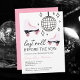 Letzte Rolle vor dem Gelöbnis! Feiern Sie ein Brautparty in einer Rolldisco mit einer bearbeitbaren Vorlage in Schwarz und Rosa. Personalisieren Sie es mit den Party-Details, der Registrierung und den UAWG-Informationen.