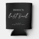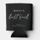 Machen Sie sich auf den Weg zur ultimativen Feier mit diesem schlanken „Letzte Segelreise der Braut“-Bierkühler - die perfekte Ergänzung für Bootspartys, Küstenurlaube oder nautische Junggesellinnenabschiede. Der minimalistische schwarze Hintergrund und die elegante moderne Typografie geben ihm ein stilvolles, zeitloses Aussehen, das zu jedem stilvollen Braut-Event passt. Ideal für Strandbräute, Yachtpartys oder Zielhochzeiten.