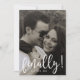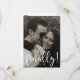 Eine lustige und moderne Save the Date-Karte, wenn Sie ein Paar sind, das sich die Zeit genommen hat, um verlobt zu werden oder ein Hochzeitsdatum Set zu haben! Dieses Design bietet eine Vollblutversion Ihres Lieblings-Fotos von Ihnen beiden, überlau mit dem Wort "endlich!" in der weißen Skript handbuchstabierten Stil Schriftart, und Ihr Hochzeitstag im modernen Schriftart. Auf der Rückseite steht die Phrase "Wir heiraten!" in schwarzem, handgeschriebenem Schriftart und enthält Details zu Ihrem großen Tag, den Sie vollständig personalisieren und anpassen können.